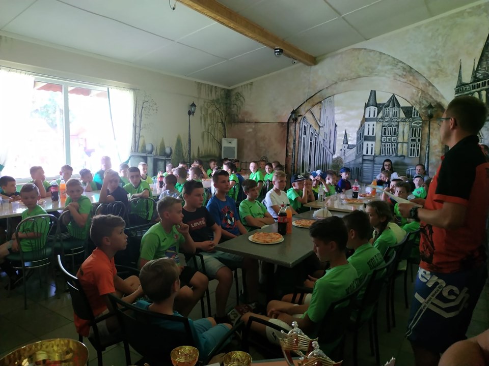 Wszystko co dobre szybko się kończy. Ognisko na zakończenie bardzo udanego obozu w Zawoi. Upominki dla wyróżniających się dzieci i zwycięzców rozgrywek szachowych i badmintona.
